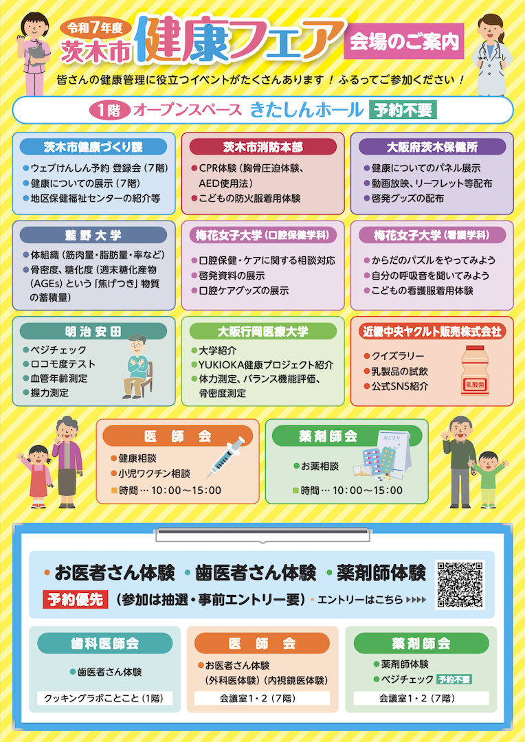 大阪府茨木市が、医師会、歯科医師会、薬剤師会との共催で、「令和7年度 茨木市健康フェア」を、2025年10月26日(日)に開催します。