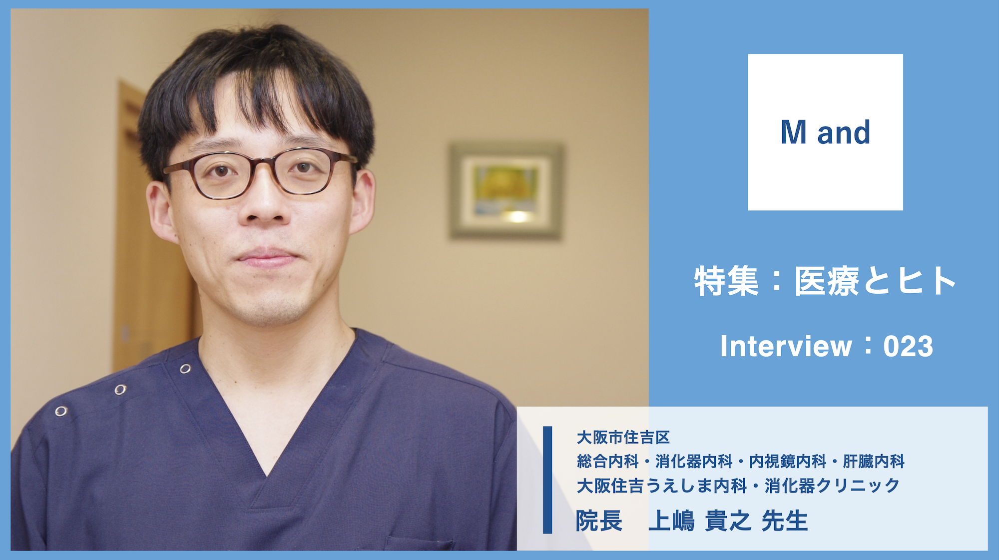 医療カルチャー発信メディア「エムアンド」では今回、内科的な体の不調を「最初に相談できる医師」としてのゼネラリストであるとも言える、院長の上嶋先生を取材。その日のうちに診断をつけ、治療方針を示す迅速さで、患者さん1人1人に真摯に向き合う上嶋先生に、クリニックのコンセプトや充実の検査体制、そして自身の専門分野以外の知識をも貪欲に吸収していく理由についてなど、お話を伺ってきた。