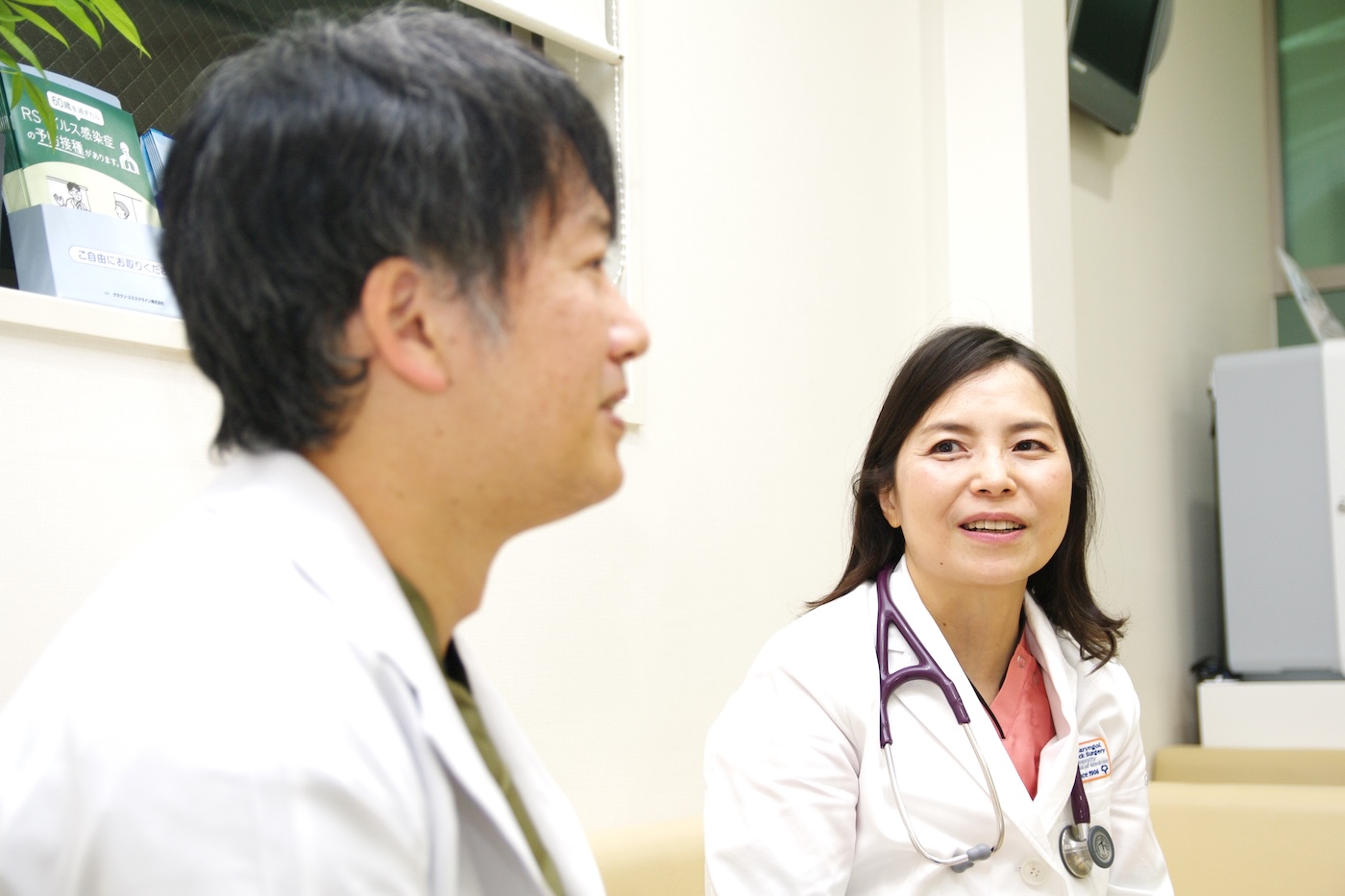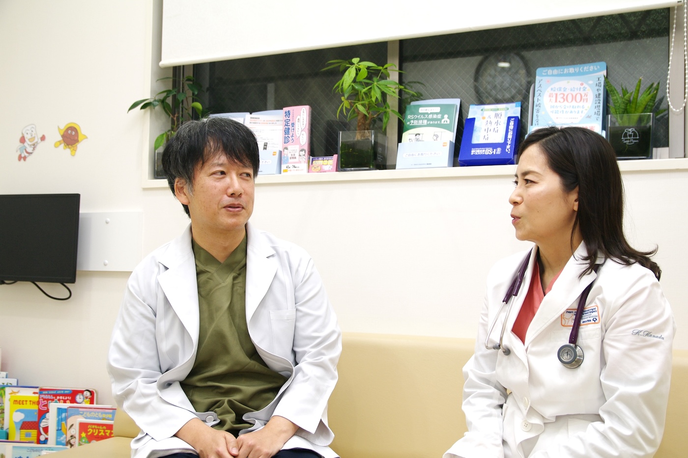 希美先生:患者さんの人生と長く付き合っていけるというのは、クリニックで診療することの醍醐味だと感じています。小児の患者さんを診ていると特に、この間まで赤ちゃんだったお子さんが、元気に駆けて診察室に入ってきてくれたりと、成長を一緒に見届けながら伴奏していけるというのは、クリニックを開業して得られた大きな喜びの1つです。私の診療モットーは「病気だけでなくひとを診る」です。患者さんが私たちと接している時間は、24時間365日の中のほんの一部です。病気や症状だけを診るのではなく、その人の背後にある生活全体も診られるような、そのような信頼関係を築いていける医師でありたいと願っています。