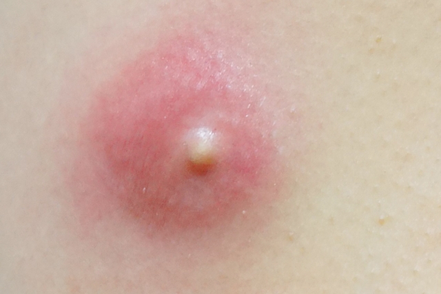 粉瘤(アテローム)は、体中どこでもできる可能性のある良性の皮下腫瘍です。皮膚の下に角質や皮脂などの老廃物が溜まる袋状の組織ができ、「しこり」として感じられ、次第に大きくなります。粉瘤は、触れたり押さえたりすると、内容物から強い悪臭が生じます。袋状の組織は自然消退しないため、外科的に摘出する必要があります。赤みや痛みがある場合は、感染し、内部に膿が貯留している可能性が高く、切開し膿を出す処置が必要です。